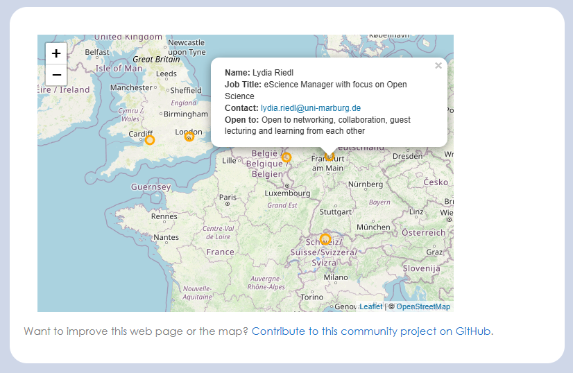 This was not my typical GIS conference, and it was great to meet with a different group outside GIS! I did get a chance to help a group make a map. The Open Science activists were keen to create a map of activists which they could update and edit without relying on third parties (organisations or people). I adapted The Fellowship of the Traveling #GISChat Book which is a Leaflet map based in a website with a bit of R coding to geocode locations and convert the CSV data into GeoJSON. It is currently a work in progress but it was an exciting project to be involved in.