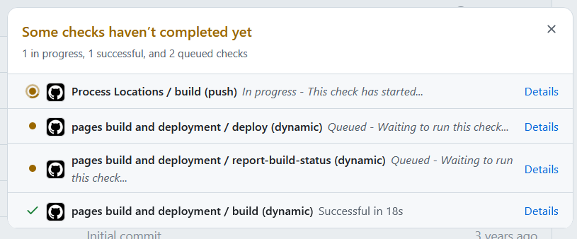 - Go back to your repo home page. A brown dot next to the commit means the GitHub Actions is running: