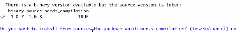 R might ask if you want to compile the package from source: