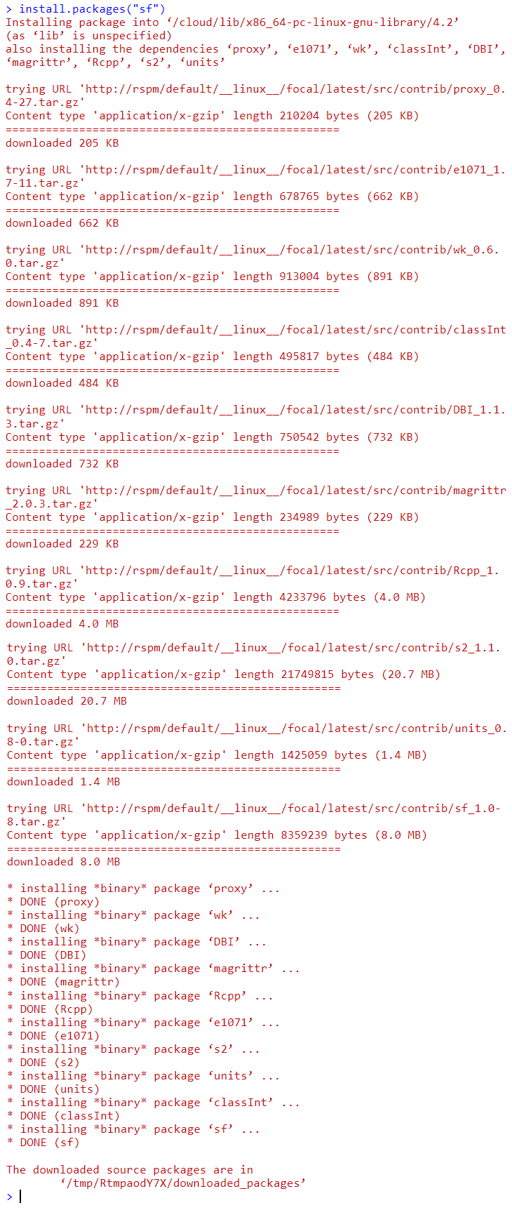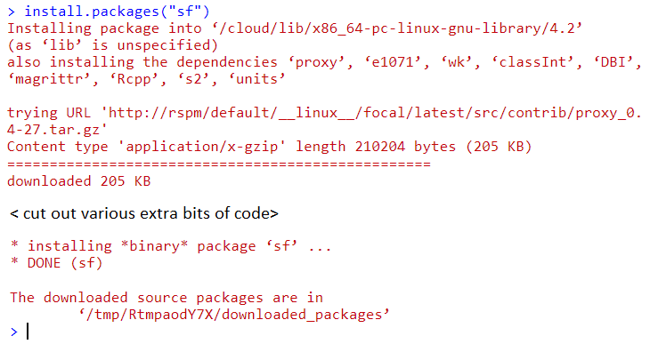 install.packages("sf")and press enter.