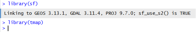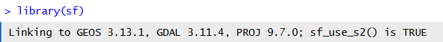 library(sf).Check the output you get - red text does not always mean an error!